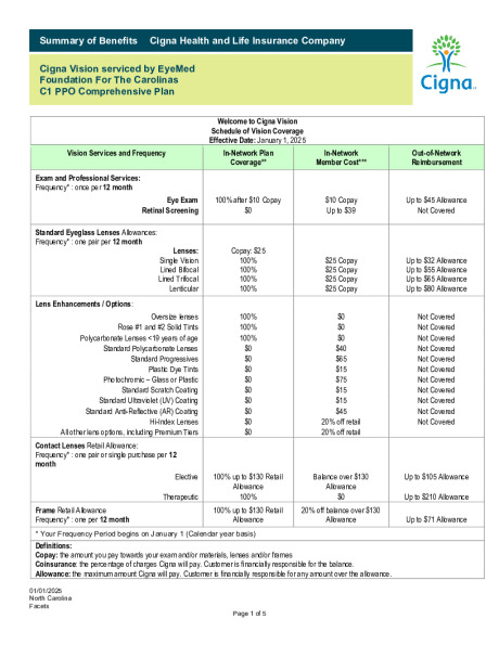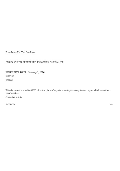 Foundation For The Carolinas is offering vision insurance for you and your family through Cigna.